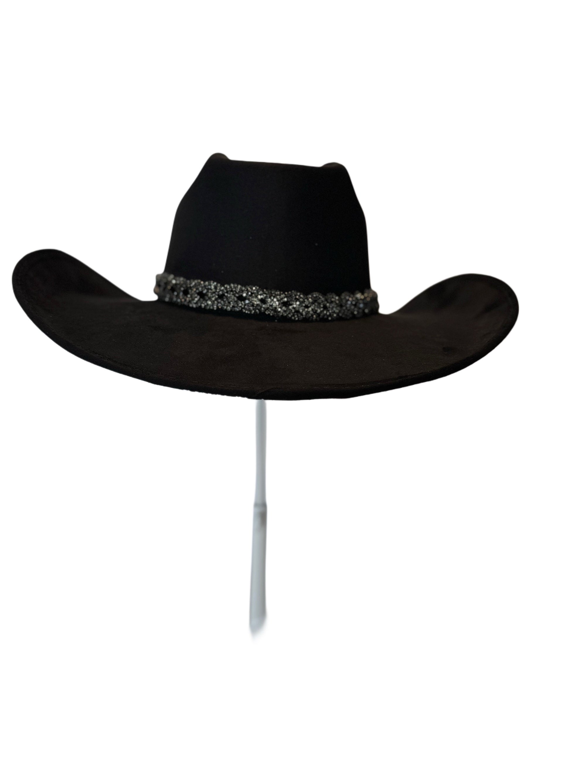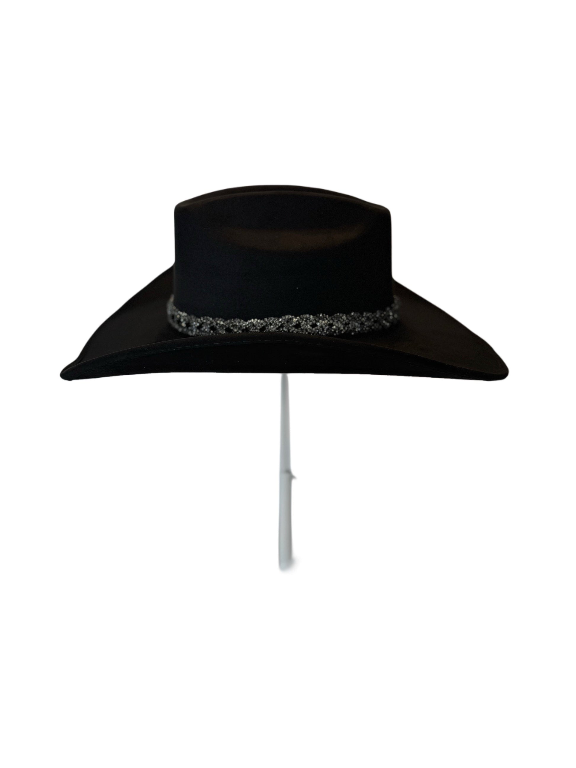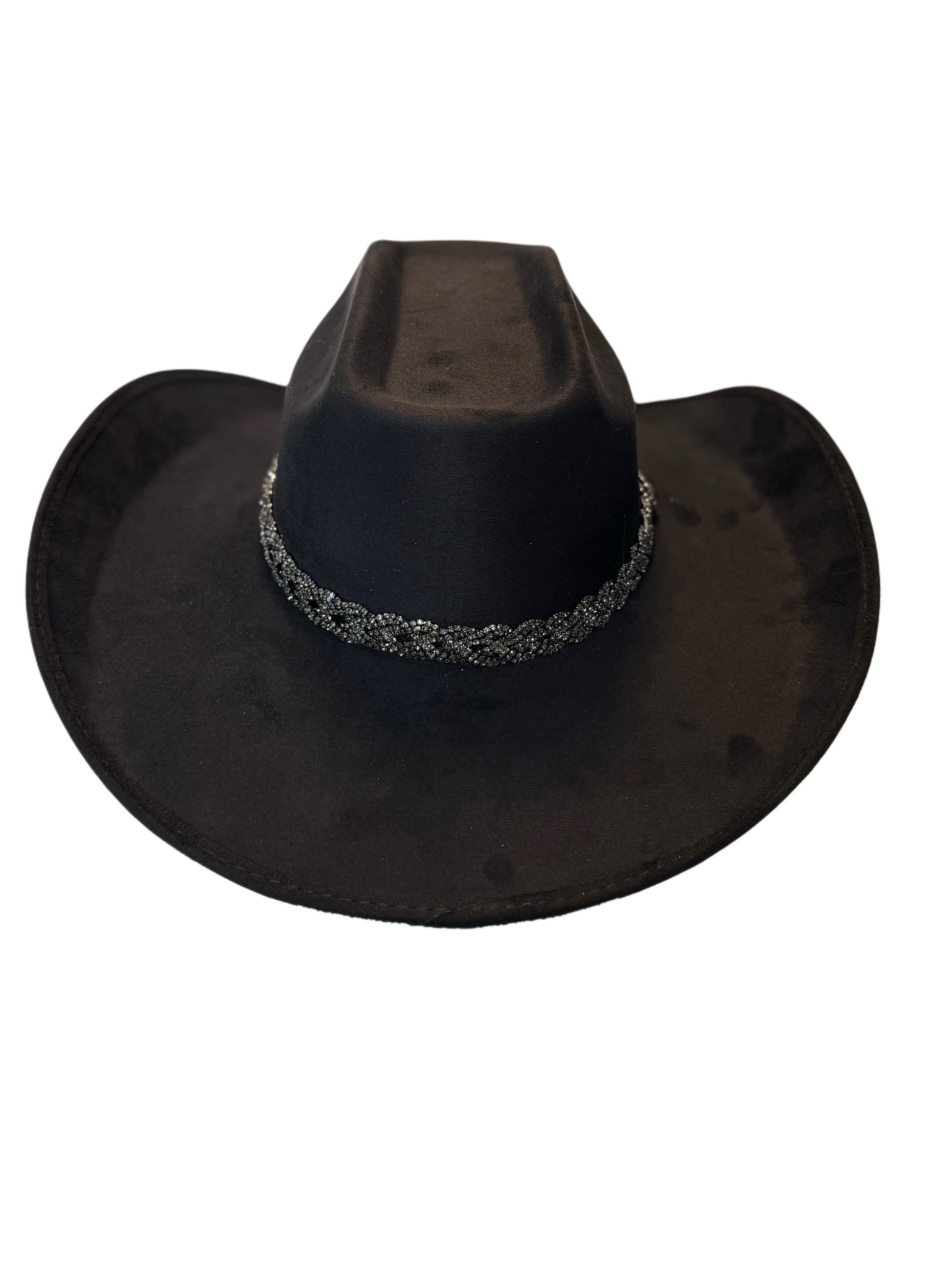 Braided Rhinestone Cowgirl hat with black rhinestone trim