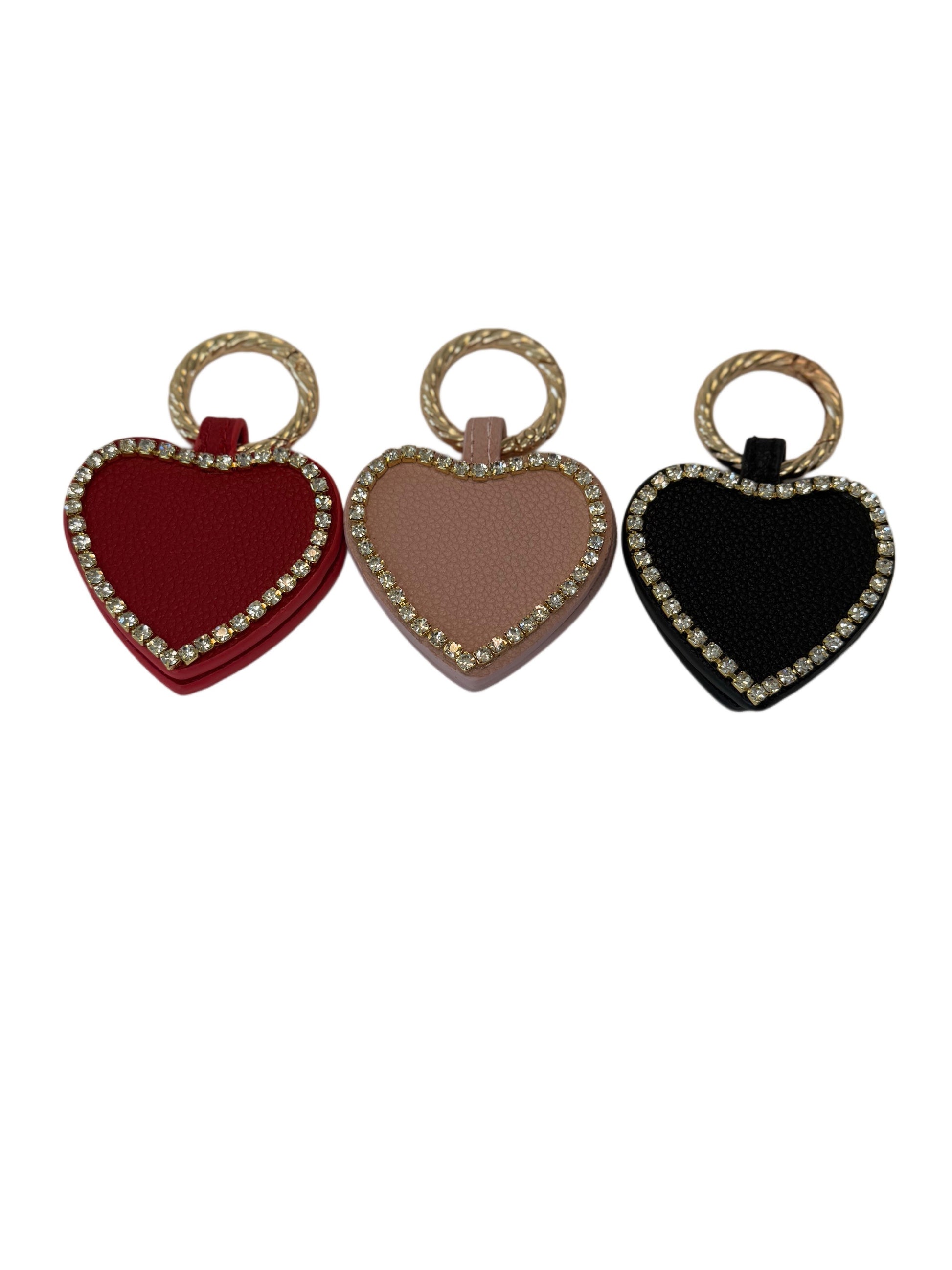 Heart-shaped Magnetic Hat clip Keychain- Black with gold rhinestones