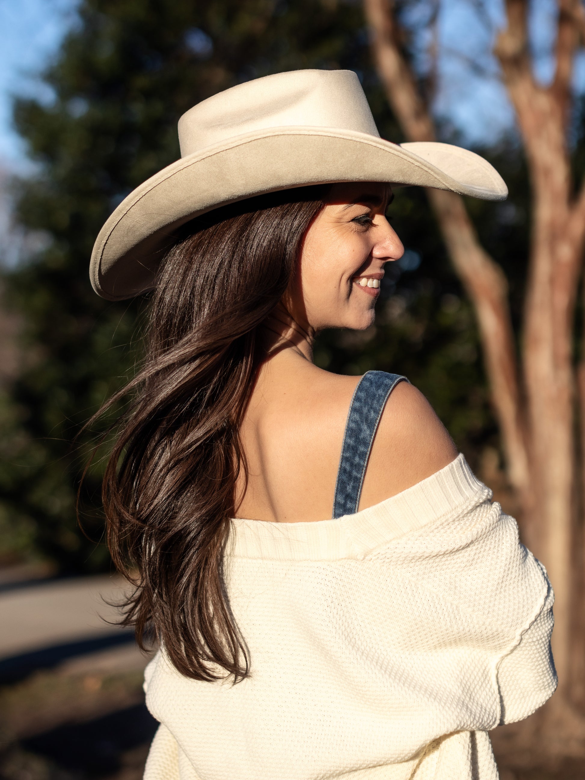 There’s a One Last Rodeo hat style for everyone! We have the classic style for anyone wanting to stand out without any of the rhinestones or pearls. Add your own details, or rock this style as is! All cowgirl hats are high quality, sturdy and made with a suede fabric called Gamusa.
